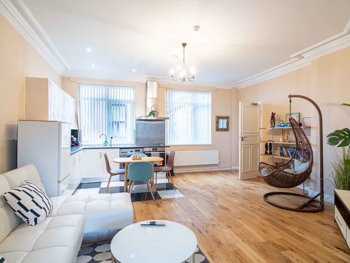Live like a tropic in this native crafted, newly renovated apartment in a historic 18th-century building. This space is full of character and has been carefully designed to submerge guests in a tropical ambience while still providing all modern amenities. Flooded with natural light, this apartment features tall 7-foot ceiling windows and high ceilings. A large bathroom and fully furnished external sitting area and open plan diner, kitchen all suited for long term or short stay.