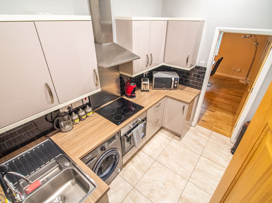 Sheffield hub is a stylish central apartment is situated in the city of Sheffield. Consisting of one double bedroom with double size bed and a large living a dining area and a private balcony. A heavy marble dining table which is perfect for eating, working and entertaining with family & friends. A separate kitchen with a ceramic electric hub and fridge freezer. This modern apartment offers a perfect stay for contractors, couples, families or friends looking for quiet accommodation.