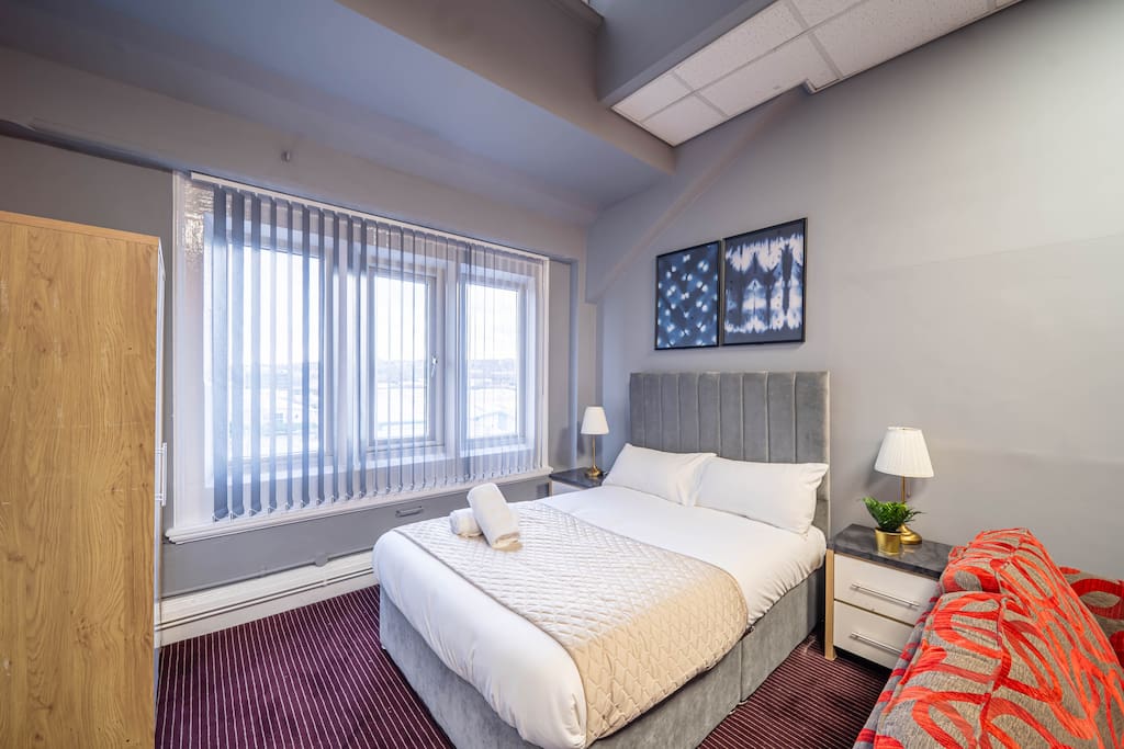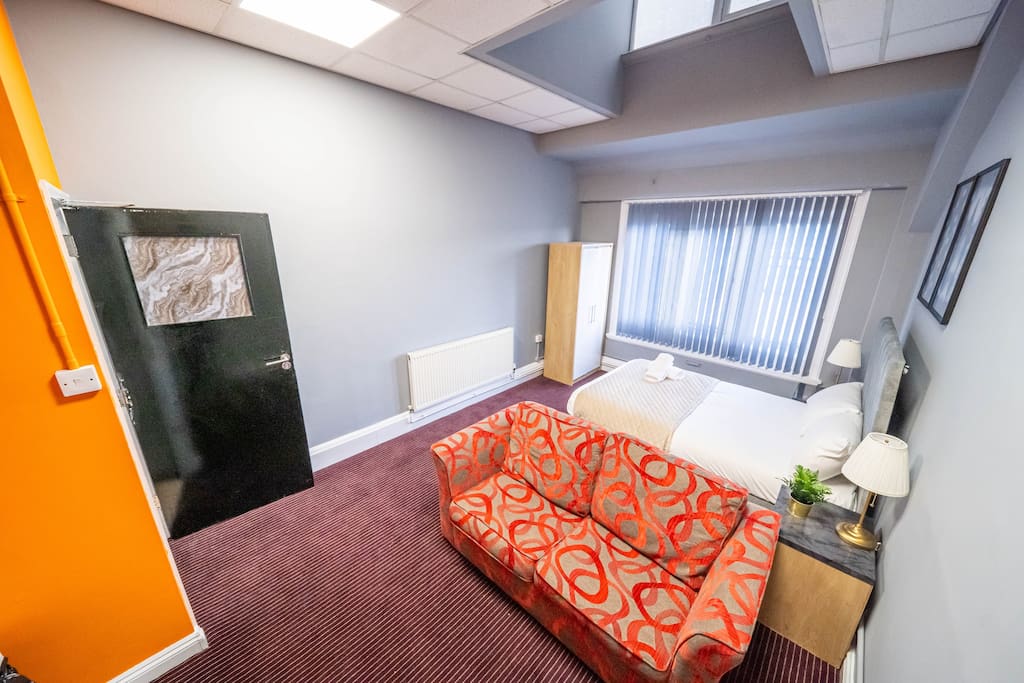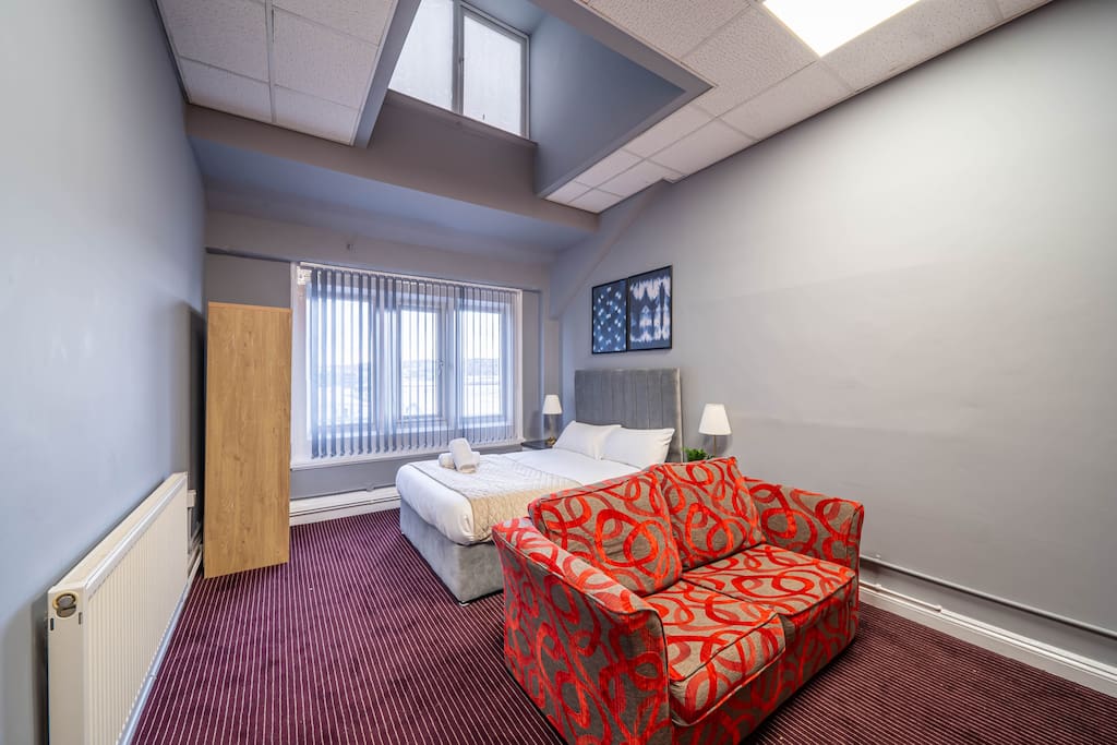 Experience a unique retreat in the heart of it all. This centrally located haven offers easy access to your favorite spots. Enjoy affordable stays with your partner or colleague in this vibrant accommodation. The room features lofty windows, a cozy double bed, and a dedicated study area for your comfort."