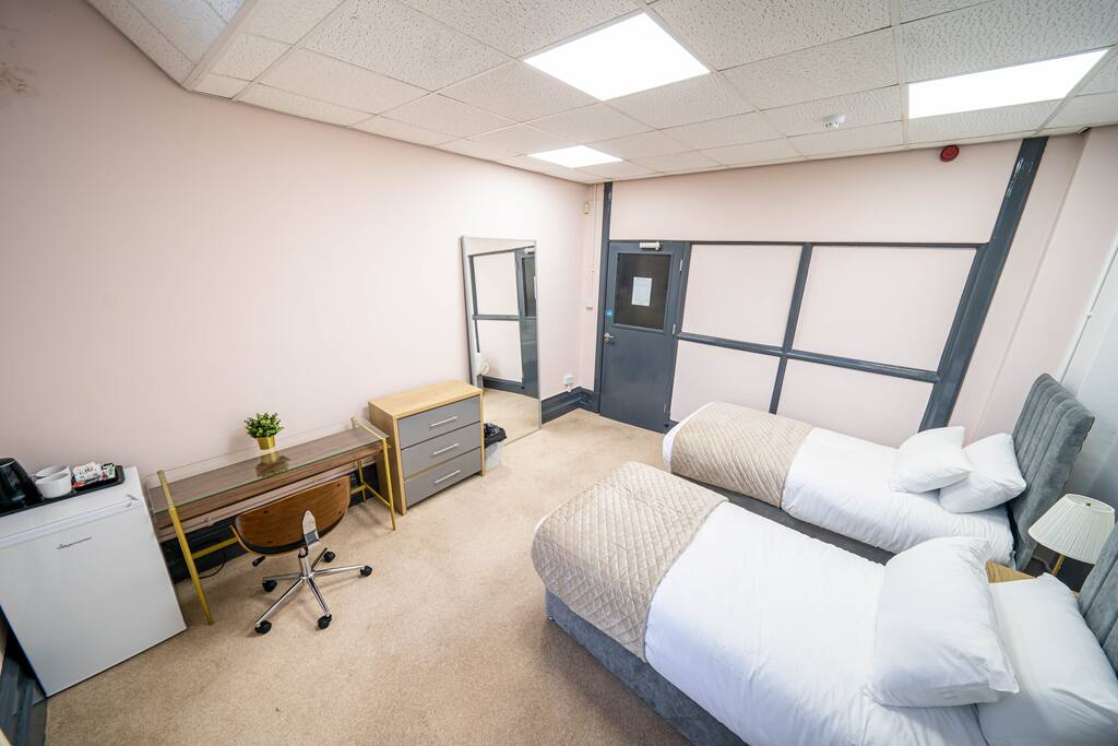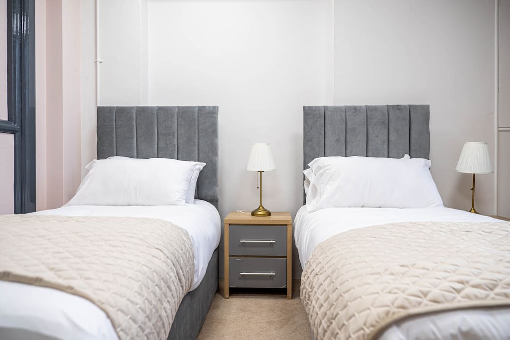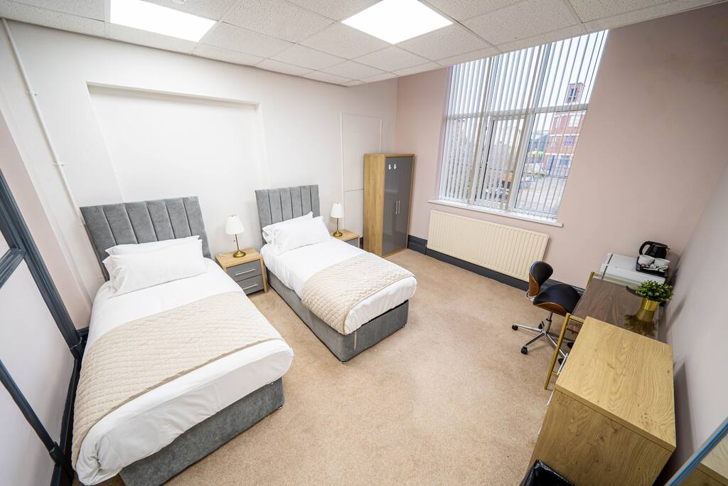 Welcome to our charming shared bedroom in Bessemer House, perfect for contractors or couples seeking a comfortable stay. This spacious room features two cosy single beds, which can be easily joined to create a king-size haven. Enjoy the convenience of a dedicated toilet, ensuring privacy and ease during your visit. Whether you're here for a short jaunt, a medium retreat, or a longer sojourn, our room adapts to your needs, promising a homely experience in the heart of Sheffield. Book now!