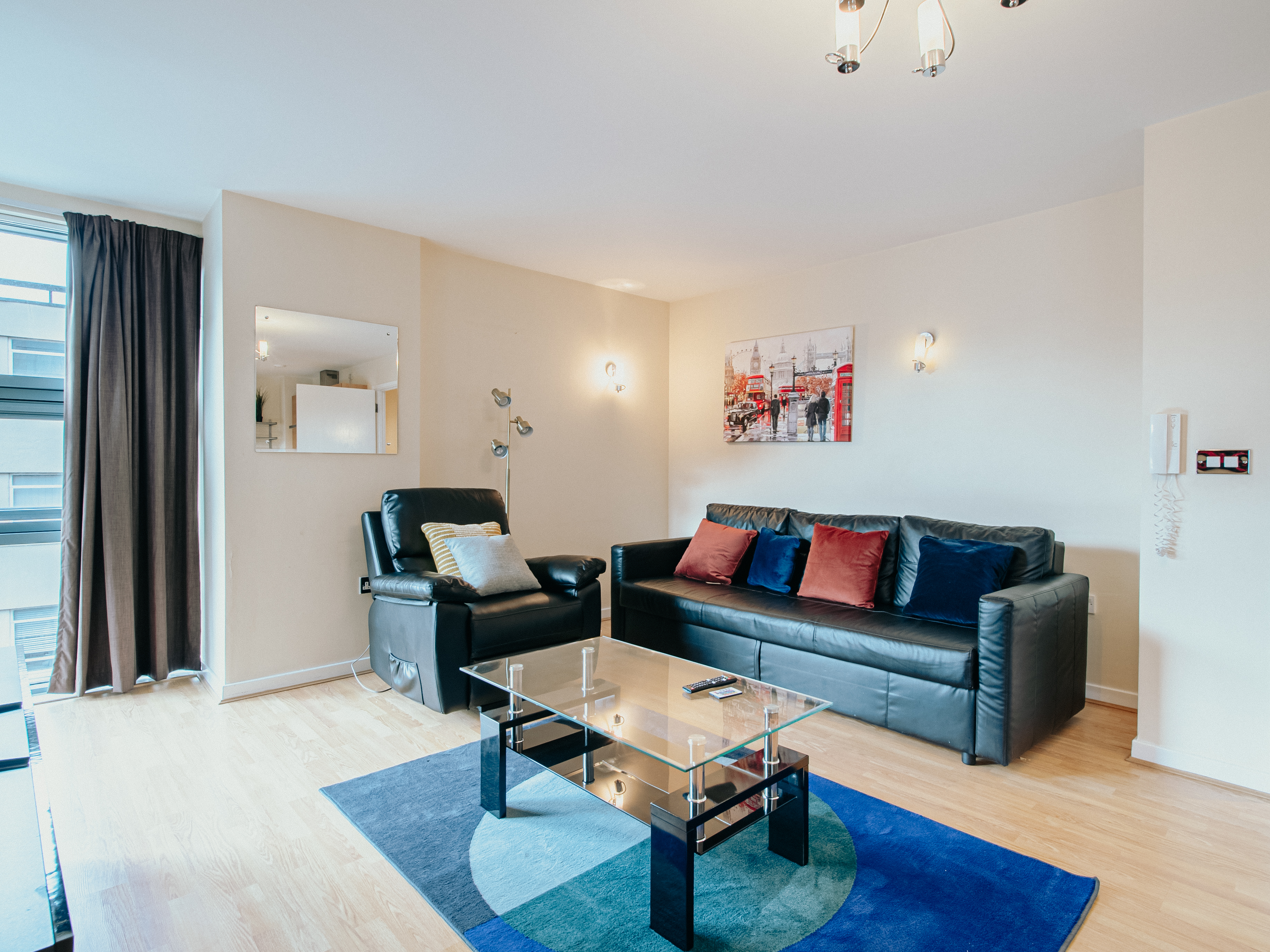 A stunning, stylish, and modern large two-bedroom apartment at the heart of the much sort after Sheffield City Centre. With a king size, on-suite bedroom and a double-bed bedroom. This is certainly an entertaining space for a stay with friends, colleagues or family, right next to everything Sheffield city has to offer. Two large bedrooms | Bigger kitchen | Bigger living room | Large clean showers | Massage chair | Great 50" TV, fibre WIFI, audio & more