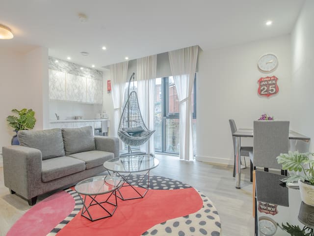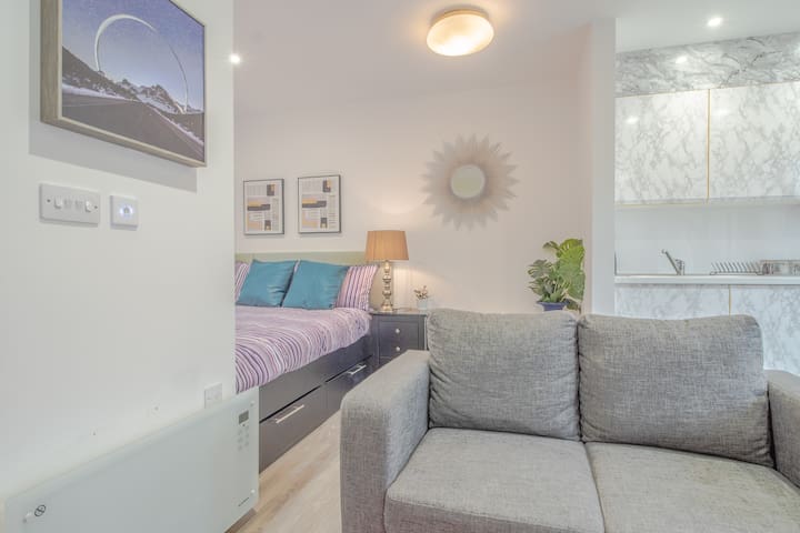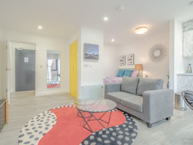 Outstandingly decorated private 1-bed studio apartment offering modern & convenient living at the heart of the city. Providing self check in access, the space is clean, practical and contains modern and quality appliances, fixtures and fittings to provide guests with a comfortable stay. Located just 10-minute walk from Sheffield train station, 6-minutes walk from Hallam and 15 mins to University of Sheffield and 2-minute walk to ASDA and KFC. Super fast Internet Wi-Fi connection and Free Parking