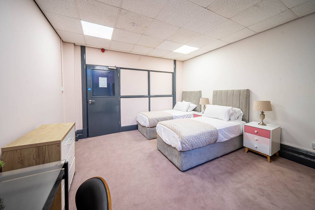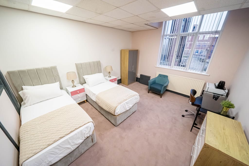 Discover comfort at Bessemer House! Our roomy bedroom, ideal for contractors or couples, features two single beds that transform into a king-size. Enjoy the spaciousness, private toilet, and the convenience of a central Sheffield location. Perfect for any length of stay, it's your cozy home away from home! The whole group will enjoy easy access to everything from this centrally located place.
