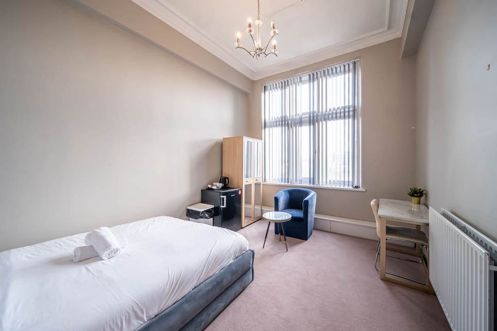 Escape to tranquillity at our unique getaway with a cosy double bedroom space inside this magnificent historic home. Centrally located for easy access to amenities, this affordable retreat is perfect for couples or colleagues. Enjoy ample space, tasteful furnishings, high windows, and a dedicated study area, making your stay exceptional and delightful. With free Wi-Fi, parking, and pet-friendly policies, it's a peaceful retreat in a historic setting. Book now for a touch of luxury and comfort.