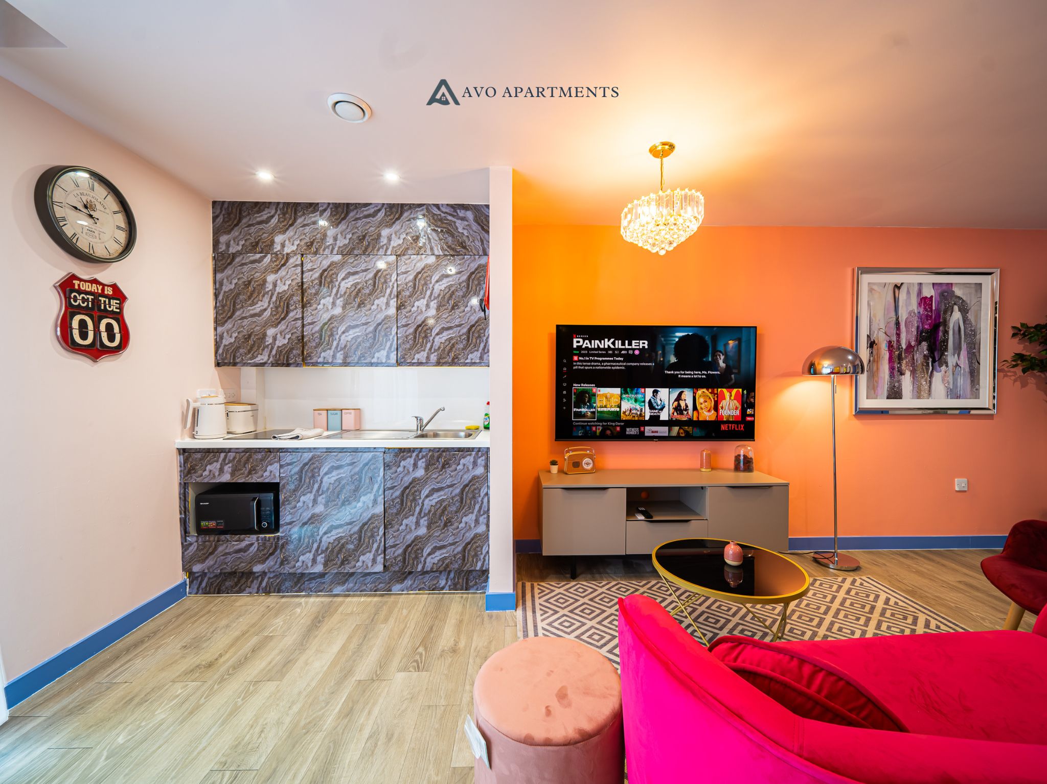 Beautifully decorated open-plan studio in a new, central building. Fully equipped kitchen & relaxing atmosphere. Ideal for singles, couples, or professionals on short or extended stays.