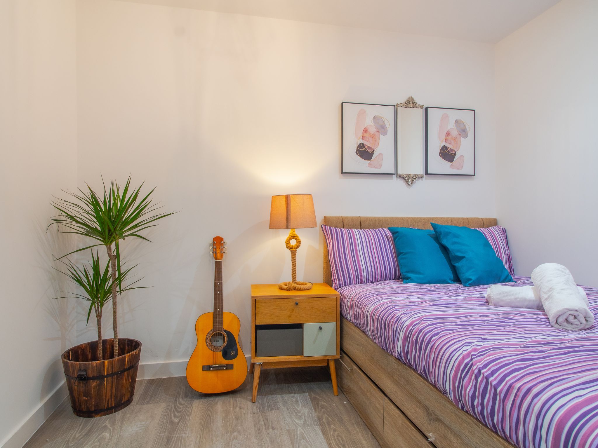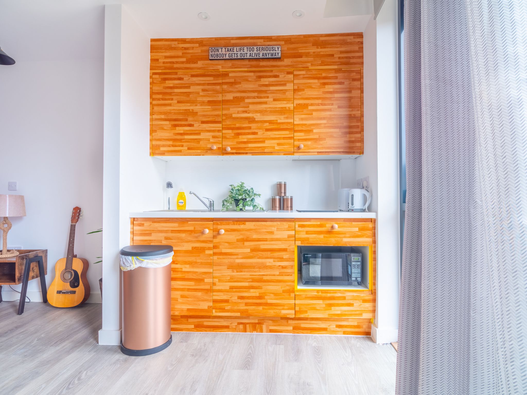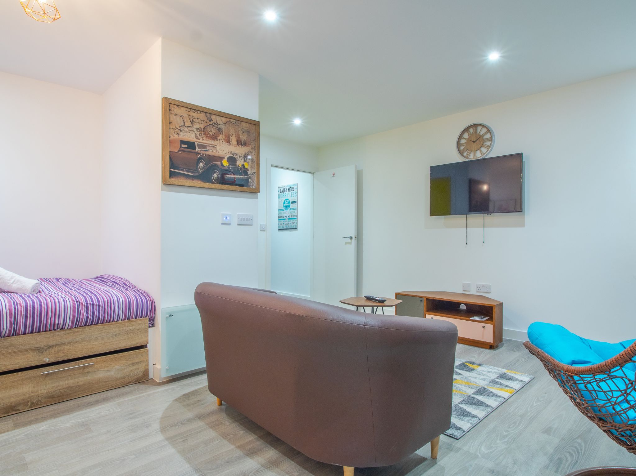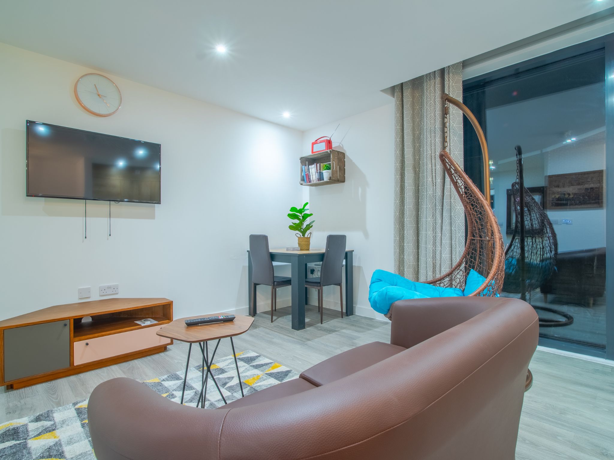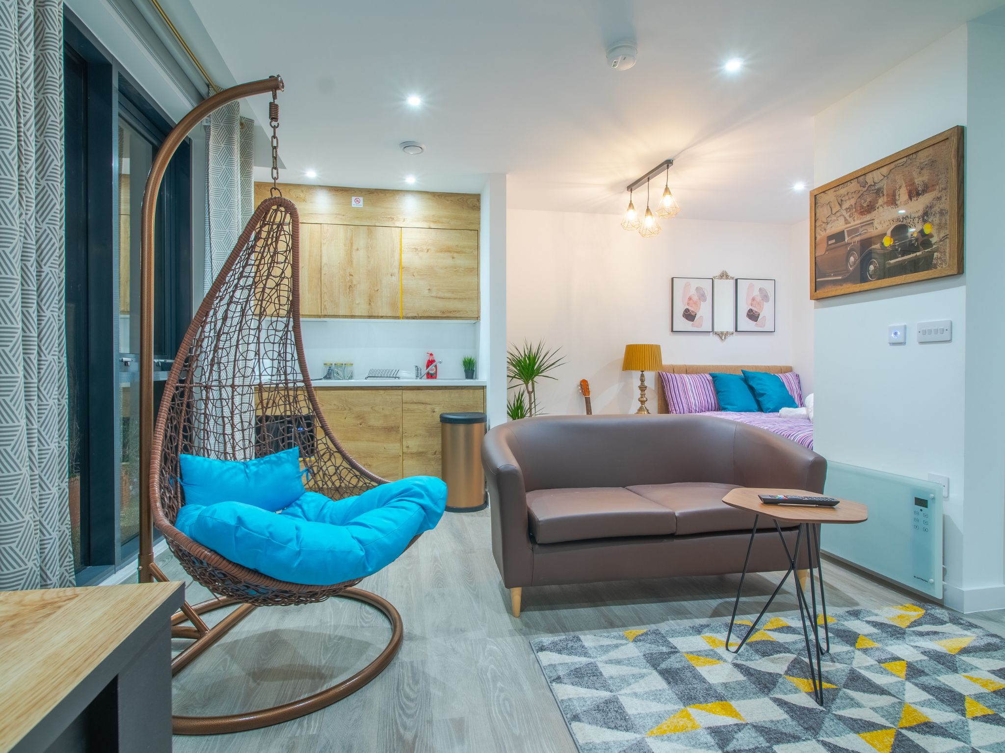 This ground-floor apartment blends rustic charm with modern comfort. Featuring a cosy double bed, colourful decor, a hanging egg chair, a Smart TV, and a fully equipped kitchen, it’s perfect for solo travellers or couples. Large windows keep the space bright, while warm wooden accents and vintage touches create a unique, homely feel. Whether you're here for work or a weekend getaway, enjoy a stylish and relaxing stay near Sheffield city centre.