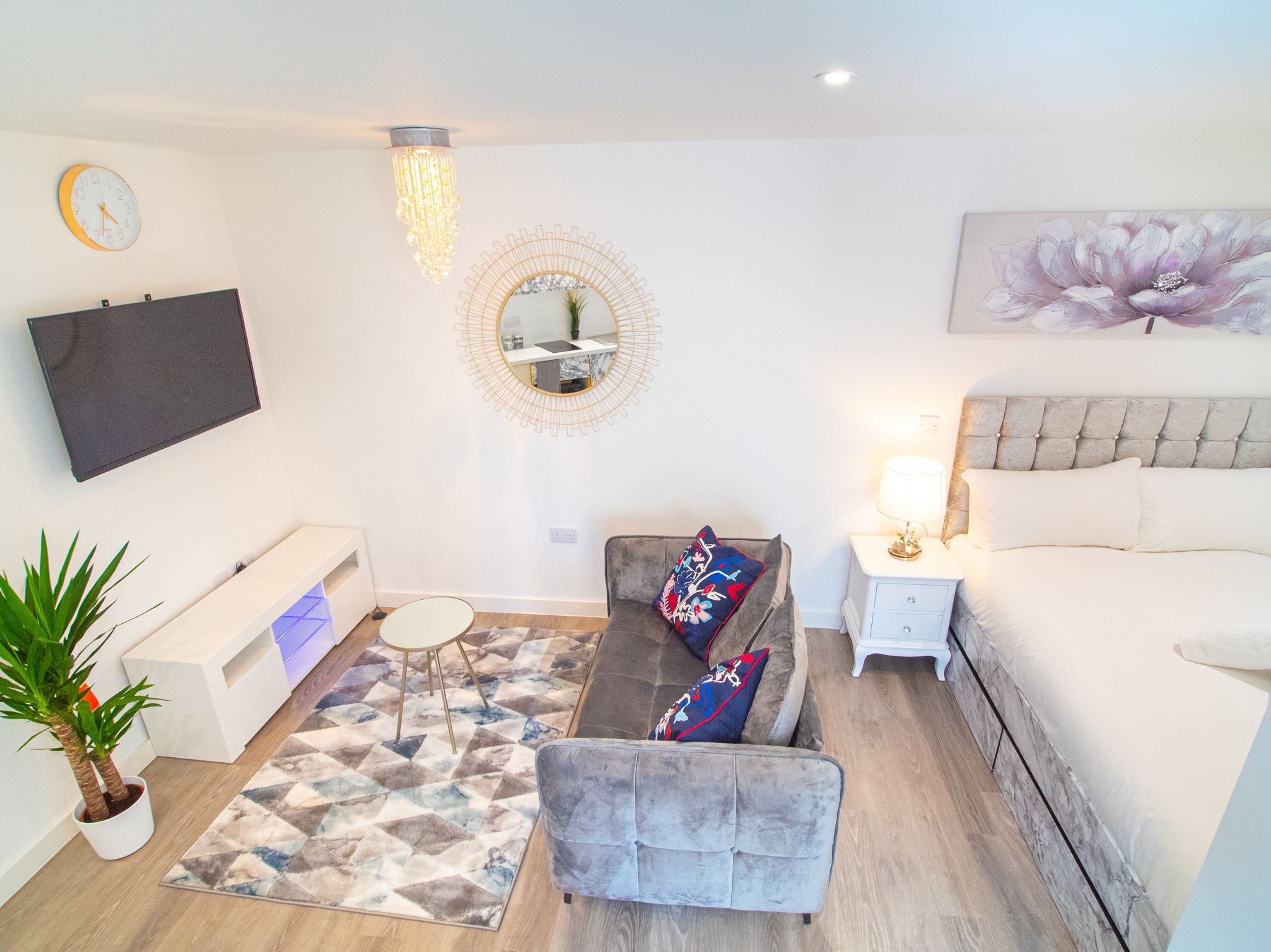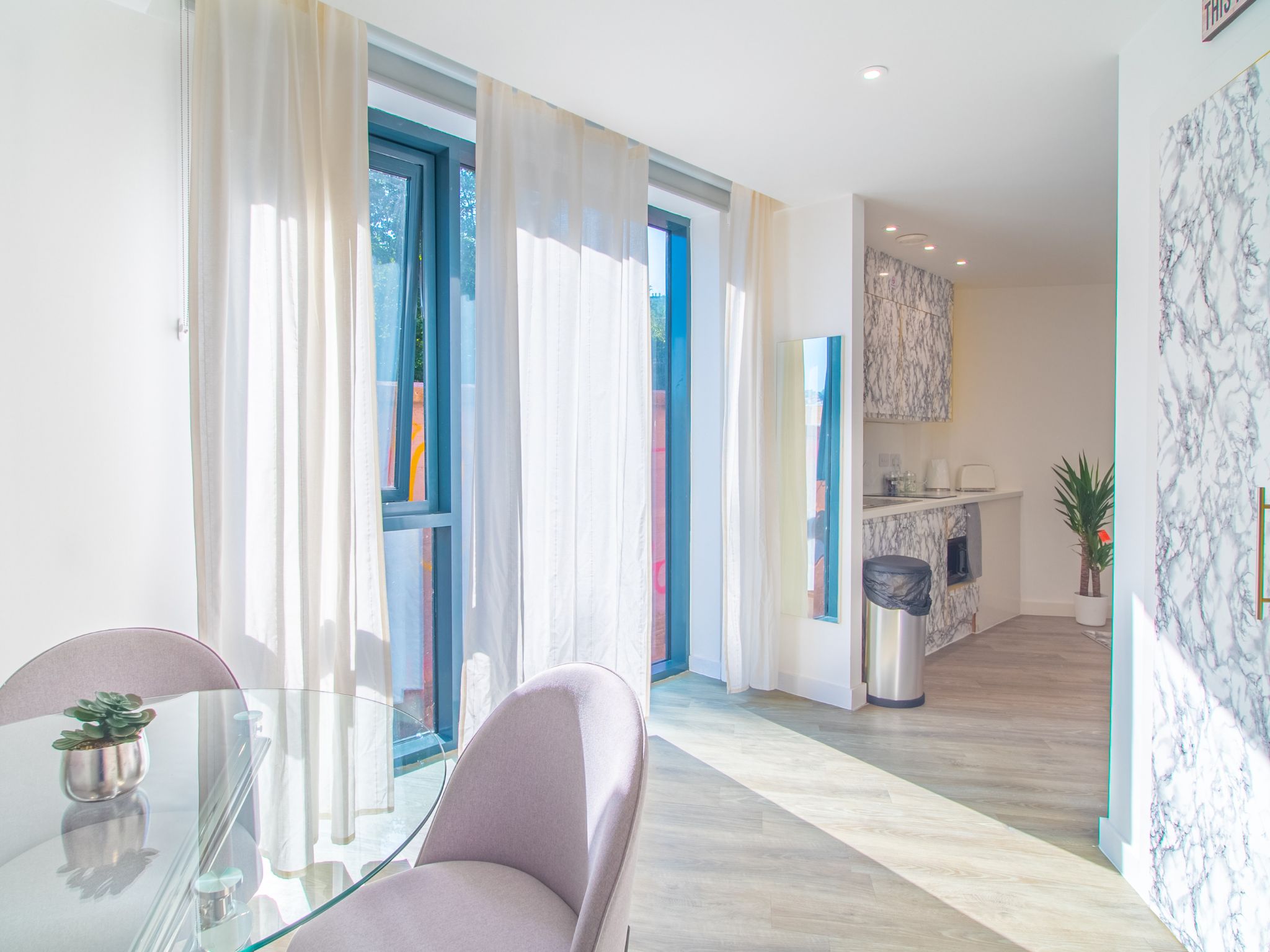 Welcome to this light-filled, thoughtfully decorated apartment – a peaceful retreat in the heart of Sheffield. The open-plan living area features a soft neutral palette, cosy seating, Smart TV, and stylish accents throughout. Large windows and patio doors bring in beautiful natural light.